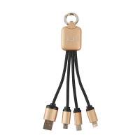 Зручний кабель для зарядки золотистого кольору з логотипом, який з'являється під час підключення USB.