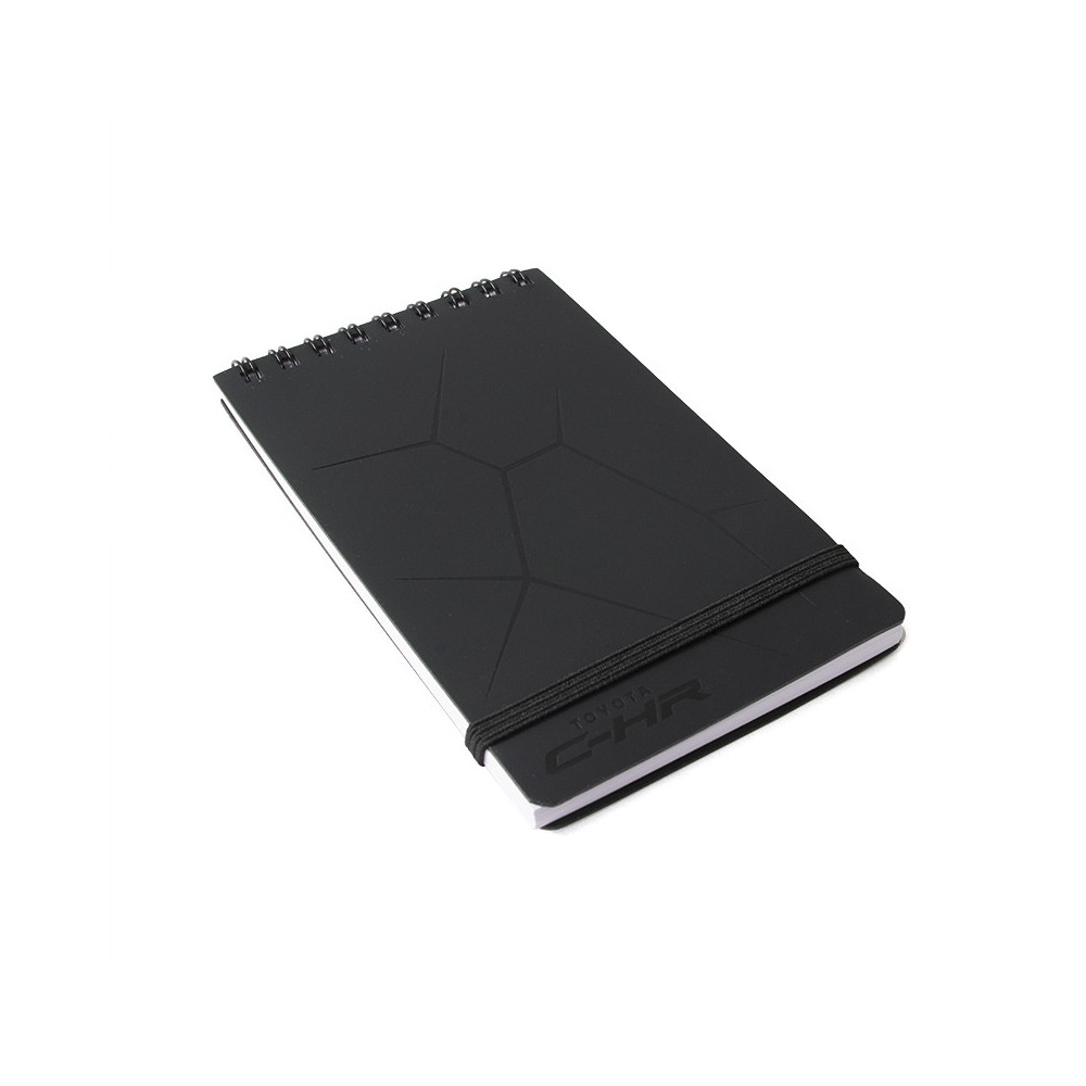 Блокнот A7 із чорної переробленої шкіри та з глянцевим чорним логотипом Toyota C-HR.