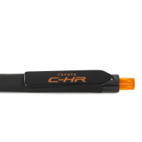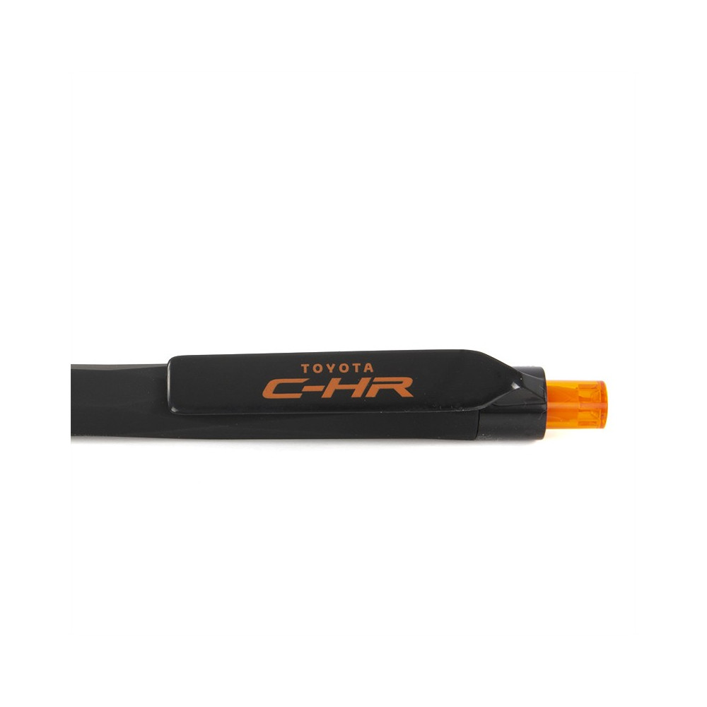 На кліпсі міститься логотип Toyota C-HR помаранчевого кольору.