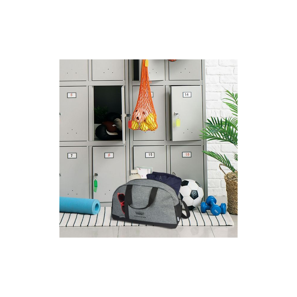 Спортивна сумка з переробленого поліестеру, сертифікованого GRS. Має вертикальну передню кишеню із застібкою на блискавці та містке основне відділення, яке теж має застібку на блискавці. Регульовані ручки та плечові ремені для перенесення роблять її для зручною для занять спортом.