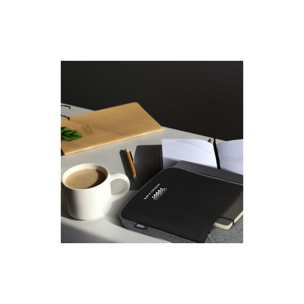 Цей елегантний чохол для ноутбука виготовлений із переробленого поліестеру щільністю 600D, сертифікованого GRS.