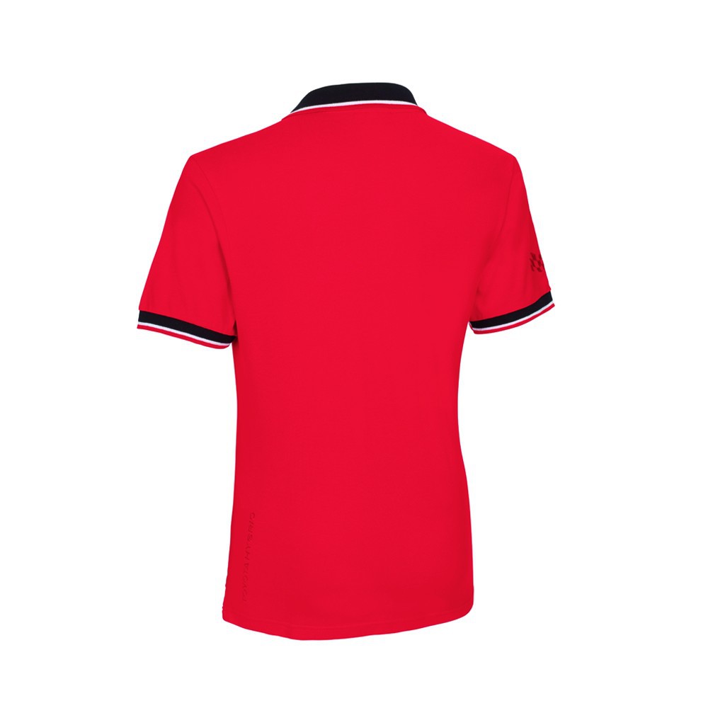 Класична чоловіча футболка-поло на ґудзиках з чорним комірцем з логотипами TOYOTA GAZOO Racing та TOYOTA HYBRID.