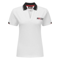 Класична біла футболка поло з V-подібним коміром та логотипом TOYOTA GAZOO Racing.