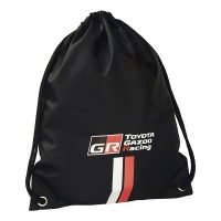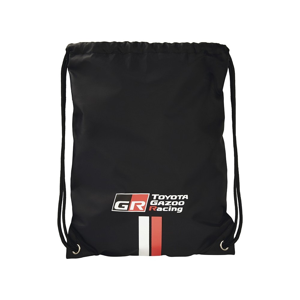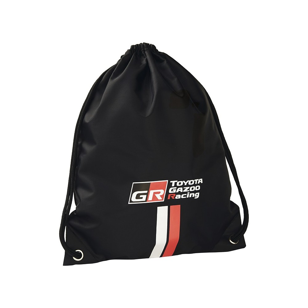 Стильний та зручний рюкзак-мішок чорного кольору з логотипом TOYOTA GAZOO Racing та червоно-білими лініями. Оснащенний подвійними шнурами для максимальної міцності.